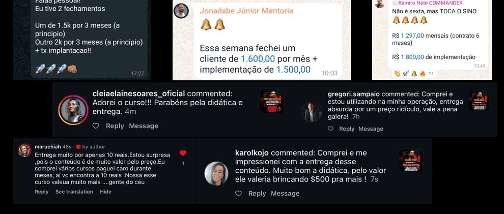 E pra te provar que é algo simples e real, dá só uma olhada nos meus alunos com seus agentes de IA já funcionando e gerando resultados